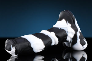- Centaur, a well-designed Horse Dildo, is another masterpiece after Magga. Its shape perfectly mimics the horse's penis, with every detail carefully crafted to maintain realism while incorporating a little bit fantasy. The head and the middle waist feature rings to ensure stimulation during use. The back of the base features a shield-shaped design which actually is a saddle, adding a touch of fun. The Centaur's black and white color style is inspired by zebra, marking Swisok's first attempt at a black and white color match, aiming to attract more innovative users.